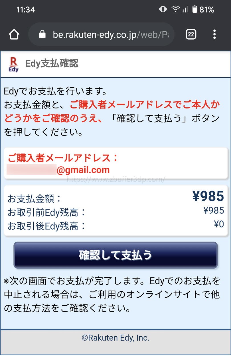 1.店舗から届くメールから、支払用のweb画面を開く 「お支払い方法のお知らせ」メールから「お支払いURL」ヘアクセスします。 2.Edy決済方法を選択する 楽天Edy(ケータイ)(おサイフケータイ (R)利用) を選択し、「選択」ボタンをクリックします。 3.メールアドレス (携帯)を入力し決済を開始する ご注文情報を確認の上、メールアドレス (携帯)を入力し「Edy決済する」ボタンをクリッ楽天グループ 宛先に自分以外の複数の受信者(メールアドレス)が入っているメールは開かない。 リンク・URLをクリックしてファイルがダウンロードされる場合は開かない。 身に覚えのない内容のメールに記載されているリンク・URLはクリックしない。 不明